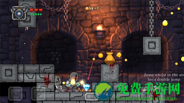 3、利用跳跃和双击跳跃功能,跨越障碍,攻击高处敌人,收集金币和道具。