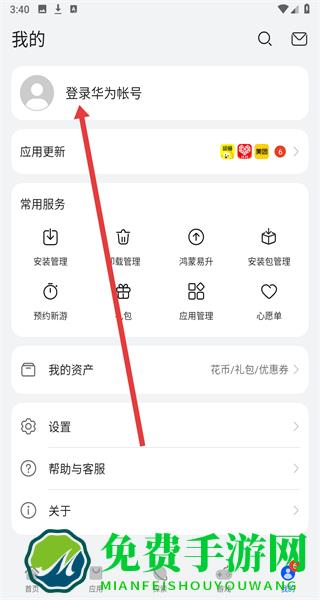 2、在进入到我的主页后,可以点击登录华为账号按钮,准备开始进行登录操作。