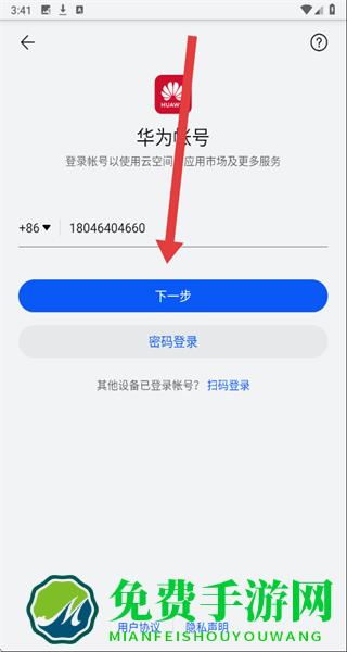3、在进入到登录页面时,点击输入框填写手机号后,点击下一步按钮进行获取验证码。
