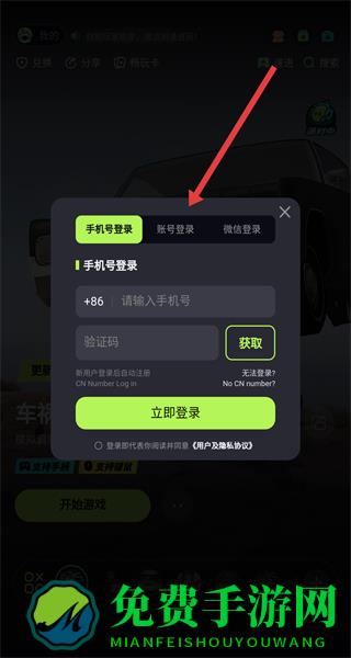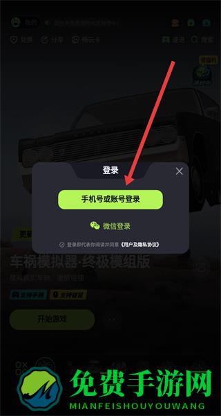 2、登录窗口中选择“手机号或账号登录”,进入手机号登录界面。