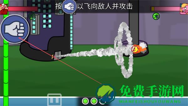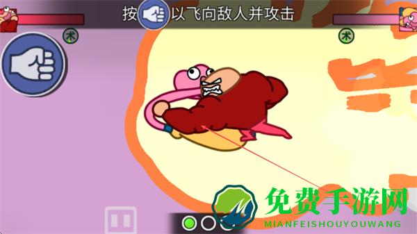 4、不断点击拳头按钮,操控角色反复飞向敌人攻击,争取击败对手,完成关卡。