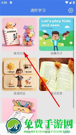 3、在进阶学习页面,点击单词分类,进入26个英文字母页面。