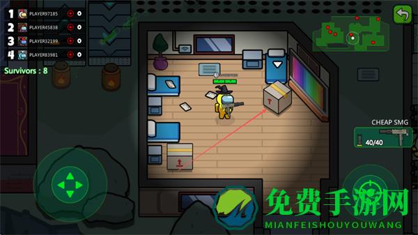 2、操控角色在房间内移动,靠近箱子获取武器资源,根据地图了解场景布局。