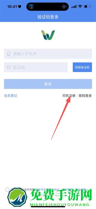 1、在验证码登录页面,点击司机注册,进入注册页面。