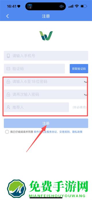 2、在注册页面,输入手机号后,点击获取验证码并输入。