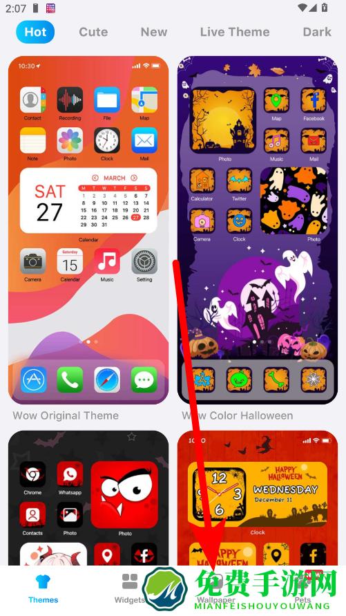2、在主题界面中点击底部的Wallpaper壁纸选项,浏览各类壁纸。