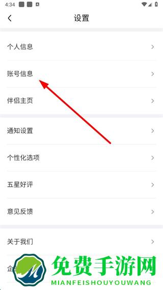 2、在设置界面,点击账号信息选项,进入账号信息页面。
