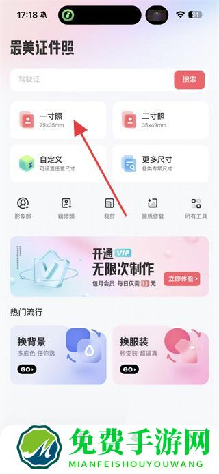 1、打开最美证件照APP,点击一寸照,进入一寸照设置页面。