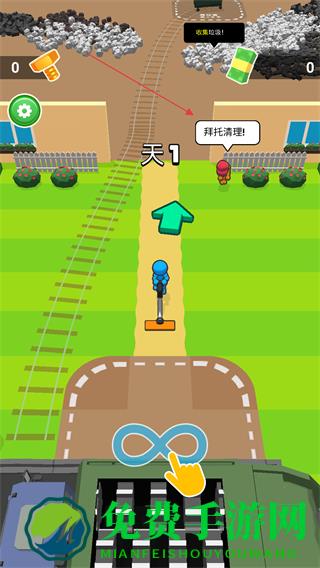 通过清扫垃圾获取收益,利用了收益解锁或升级清洁的装备,提升了清扫效率与范围,让清洁的任务更轻松完成。