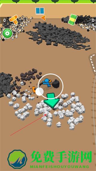 1、跟随箭头指引前往垃圾堆积处,操控角色使用工具收集垃圾。