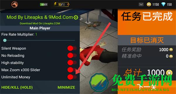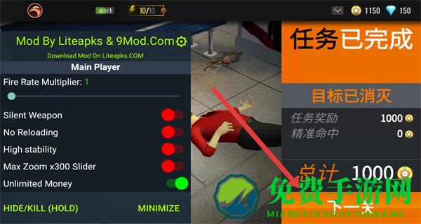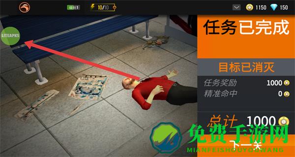 金币可通过剧情/悬赏任务获取,钻石用于解锁高级武器,体力消耗机制鼓励精准射击,爆头奖励与广告回血设计平衡付费与免费体验。