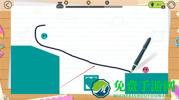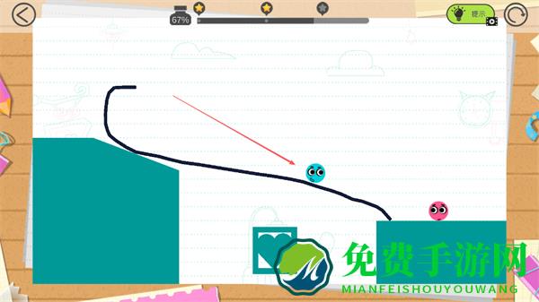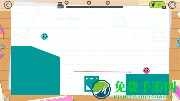 4、蓝色小球沿绘制的线条滑动,向粉色小球移动,尝试与粉色小球相遇,完成关卡。