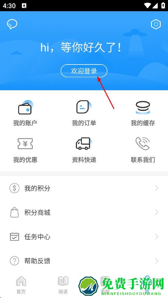 2、进入App主界面后,点击底部导航栏中的“我”选项。