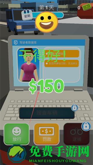 4、罚款后会获得奖励如$150,并显示干得好!,继续执行执法任务。