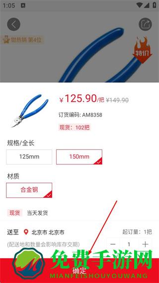 3、在规格选择界面确认规格、数量后点击确定,进入提交订单界面。