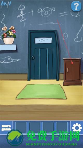 2、进入房间后,点击右侧棕色柜子,获取开门的钥匙。