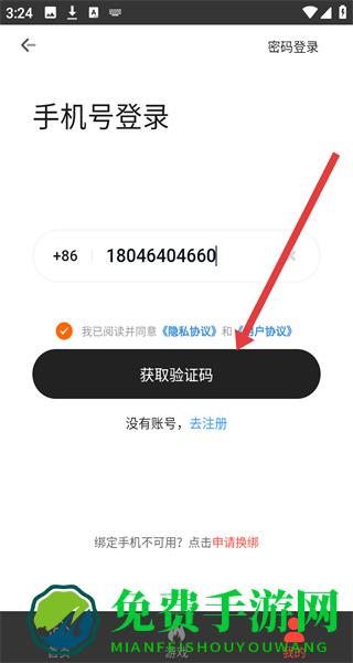 3、个人中心页面输入手机号后,点击“获取验证码”。