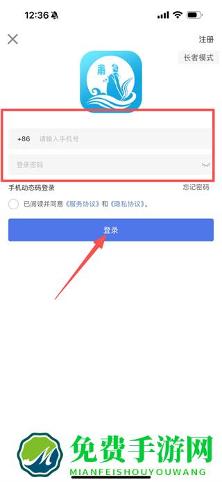 4、在登录页面,输入手机号和密码,勾选后点击登录,完成登录操作。
