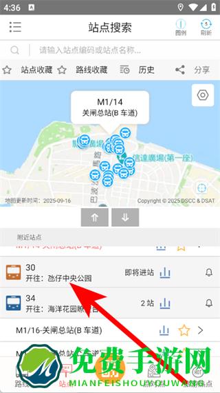 2、在站点页面,点击选择目标公交线路站点,进入详情页。