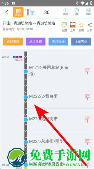 3、进入线路详情页后,选择具体候车站点。
