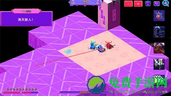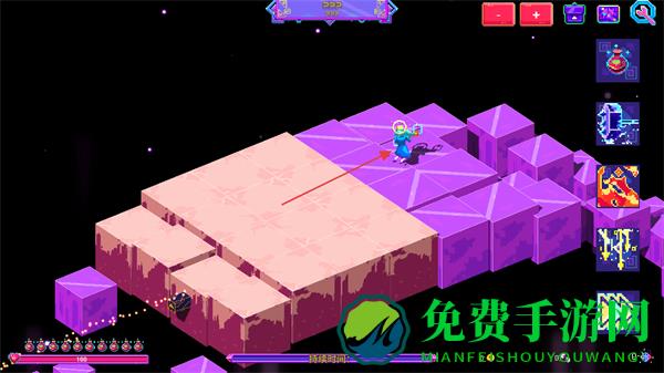 1、操控角色在霓虹风格的方块地图中移动,探索不同区域,寻找敌人和资源。