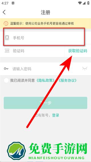 3、在注册登录页面,输入手机号后,点击获取验证码。