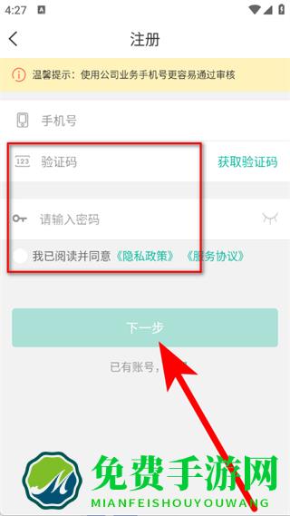 4、输入验证码并设置密码,勾选后,点击下一步,完成注册。