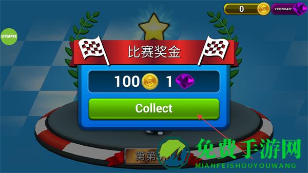 4、比赛结束后点击Collect领取100金币和1紫钻的比赛奖金。
