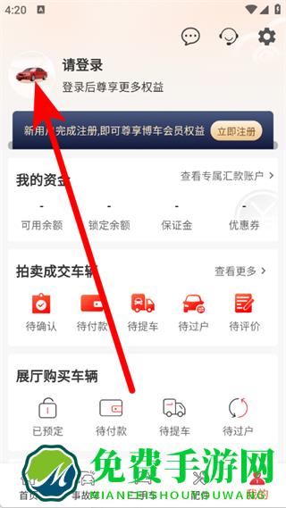 1、打开博车网拍卖,点击底部导航栏我的,进入个人中心页面。