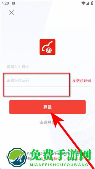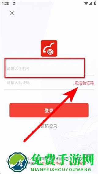 3、在登录页面,输入手机号,点击发送验证码。
