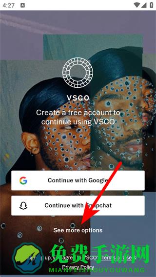 1、打开VSCO应用,点击See more options,进入账号注册选项页面。