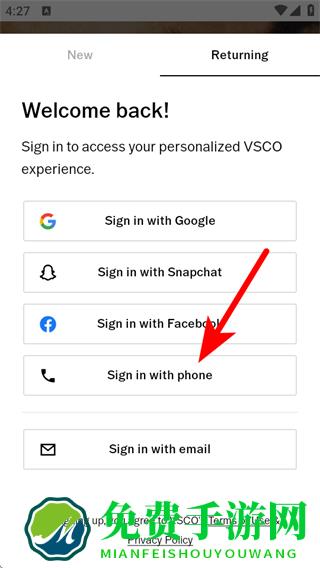 3、在返回用户界面中,点击Sign in with phone,进入手机号码输入页面。