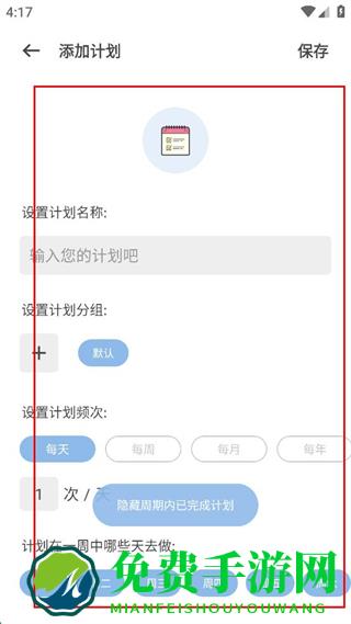 可设置每天/每周/自定义/无限周期内目标次数,以及指定一周内哪些天去做。