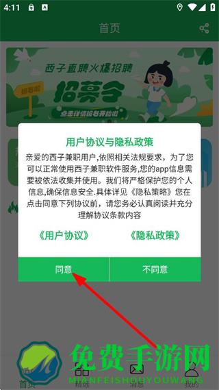 1、在用户协议与隐私政策弹窗中,点击同意,进入首页。