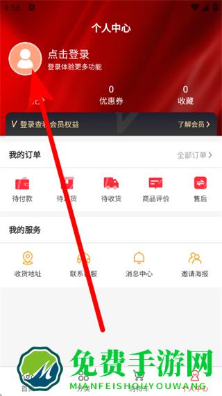 2、在个人中心页面,点击登录,进入登录界面。