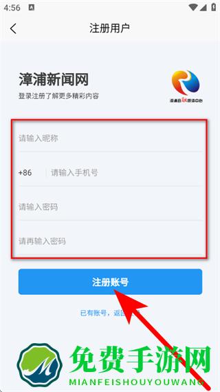 4、输入昵称、手机号、密码,点击注册账号,完成注册。