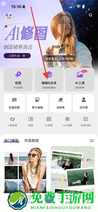 1、打开APP后,点击编辑&合成选项,进入背景与前景选择界面。