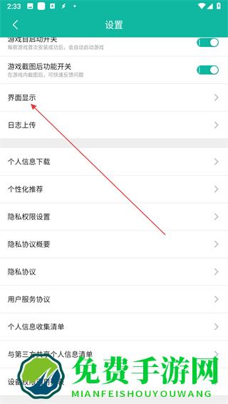 3、在设置页面找到界面显示选项,点击进入界面显示页面。