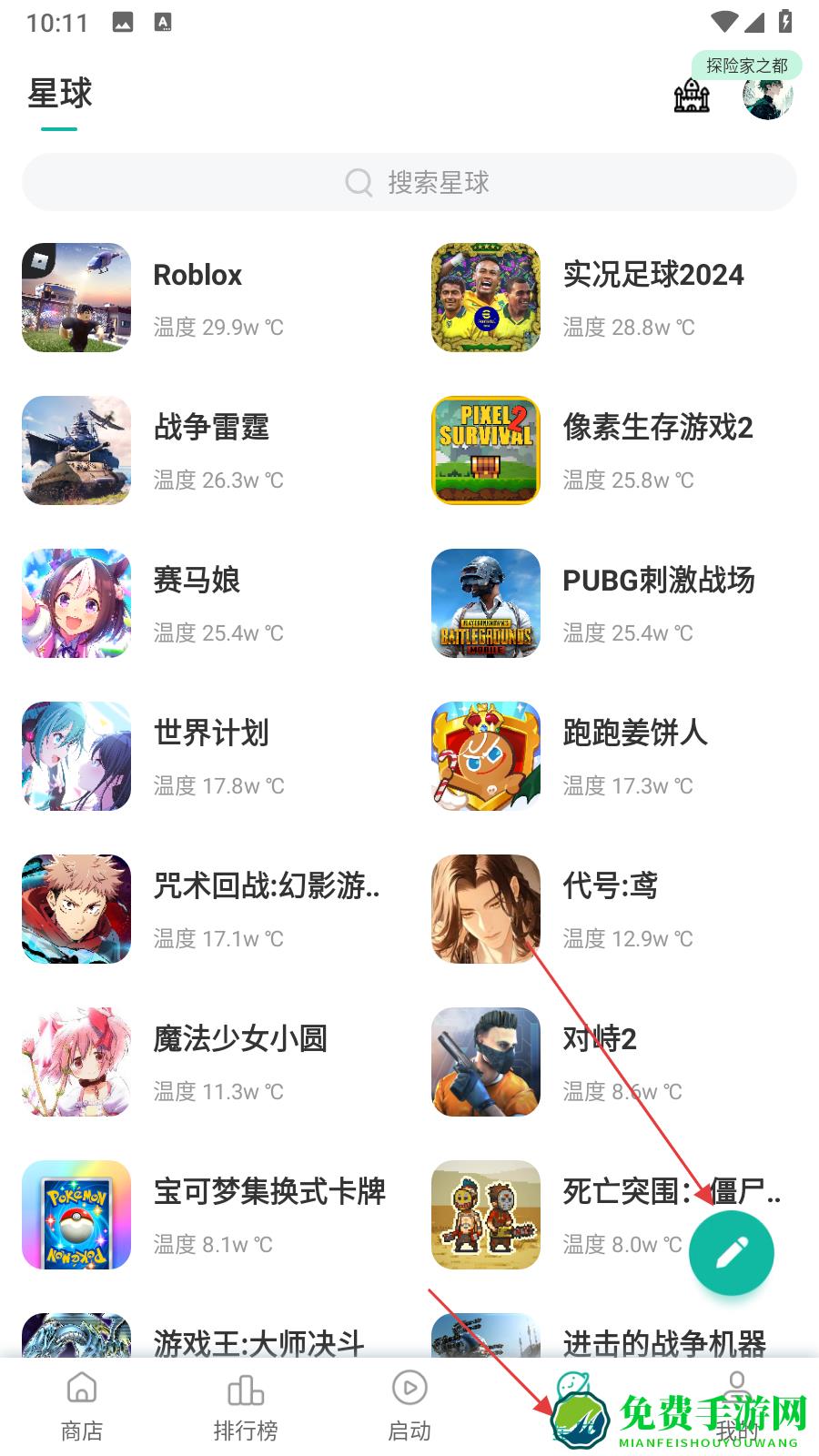 1、打开OurPlay软件,点击底部导航栏星球进入社区界面,在界面右下角点击绿色铅笔图标进入发帖编辑页面。
