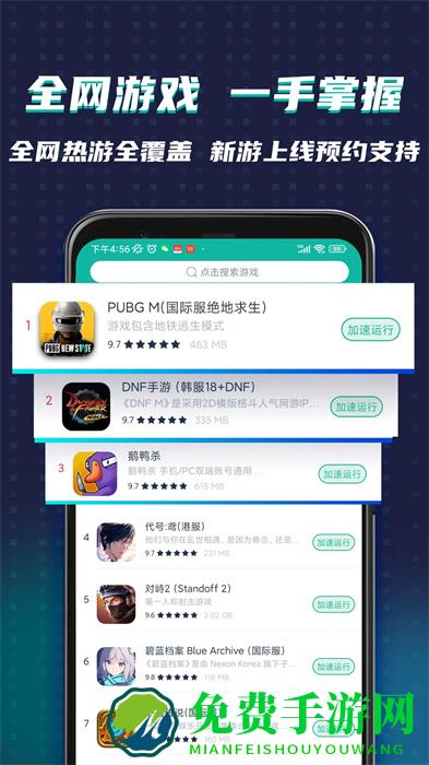 ourplay64位拥有海量精选游戏等你来体验,还有各种游戏加速器,让你可以更好的体验游戏乐趣,这款软件绿色无毒,不需要root就可以使用,非常方便,它覆盖全球多个区服的加速节点,可智能优选线路,降低网络延迟,让玩家享受不掉线、不闪退、不卡顿的流畅游戏体验,有需要的用户赶快来下载体验吧。