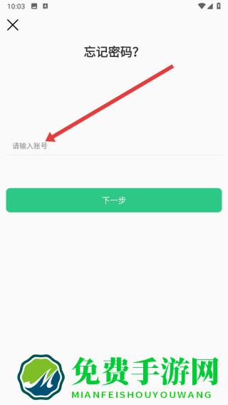 4、在进入到忘记密码页面中,点击输入框填写账号后点击下一步可开启找回操作。
