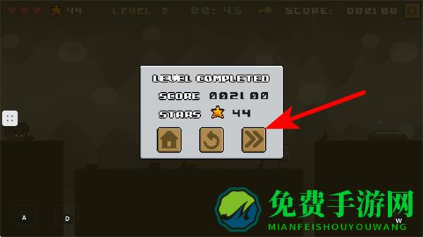 4、游戏关卡完成后,我们需要点击带有双箭头的按钮,可进入下一关继续游戏,这是持续挑战新关卡的关键操作。