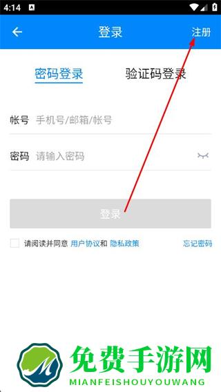 2、在登录页面,找到并点击右上角的注册选项。