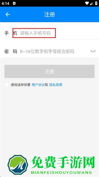3、在注册页面,在输入框内输入需要手机号码。