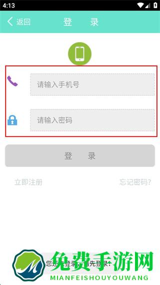 3、在登录页面依次输入手机号码和密码。