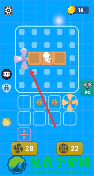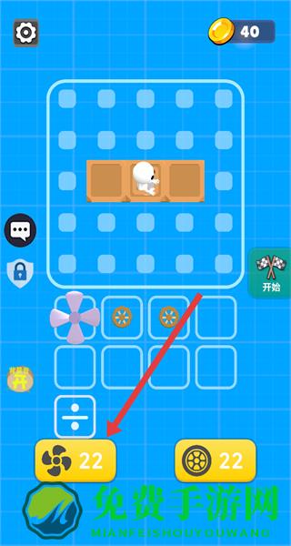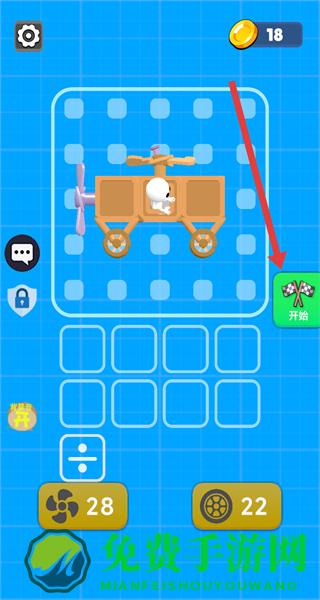 4、添加车轮等其他组件后,点击右侧开始按钮,启动组装好的载具,开始关卡挑战。