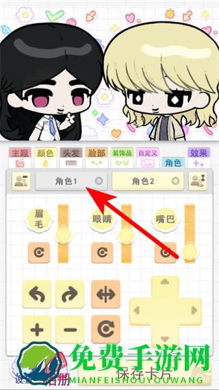1、点击角色1,可对眉毛、眼睛、嘴巴等面部细节进行调整,打造独特角色形象。