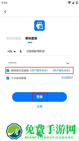 4、勾选接受用户服务协议用户隐私协议点击登录按钮。