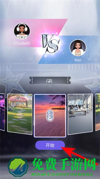 3、选择对决场景后,点击开始按钮,进入穿搭比拼关卡。