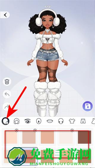 2、在形象编辑界面,点击肤色选项,选择合适的肤色,为角色定制基础形象。